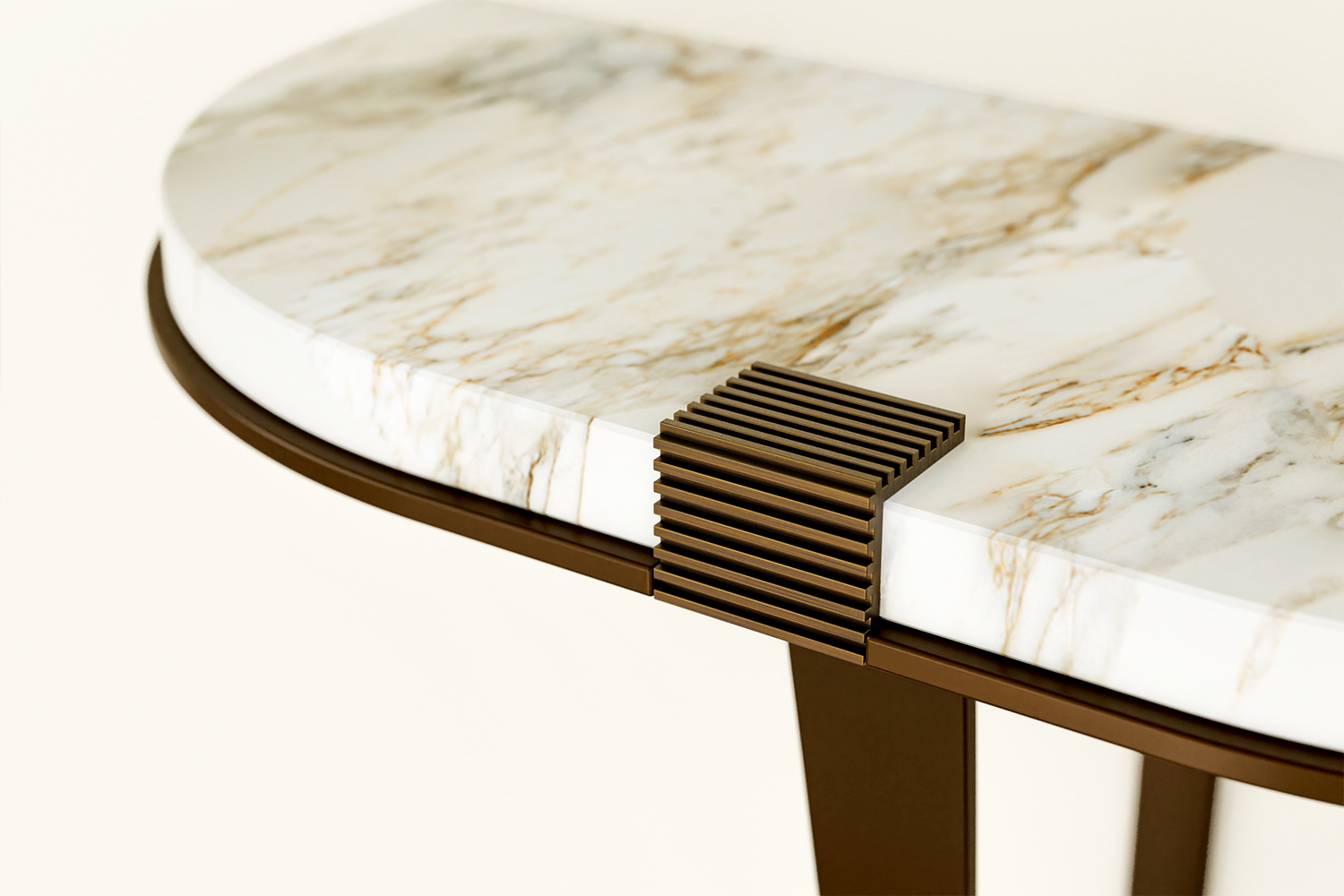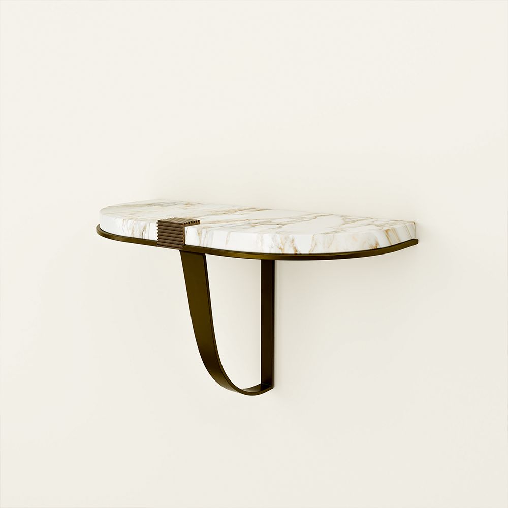 Featured imagery: Warm Bronze frame, Luxe Calacatta Oro stone top (Luxe)