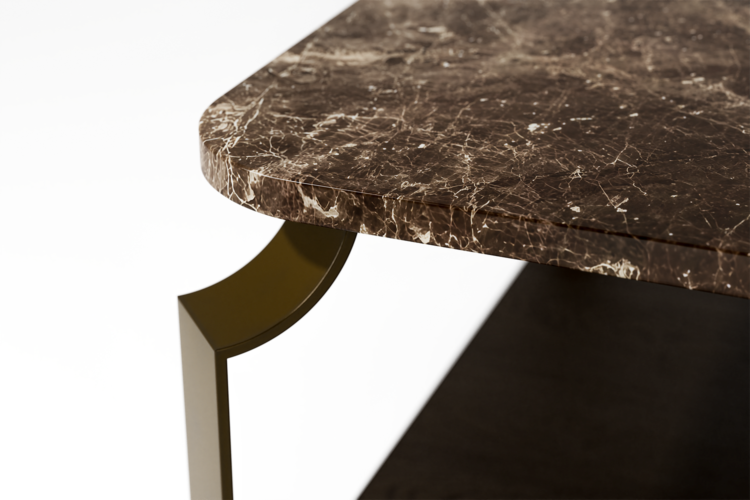 Featured imagery: Dusky Bronze frame, Luxe Calacatta Oro stone top (Luxe), Mid Brown timber shelf