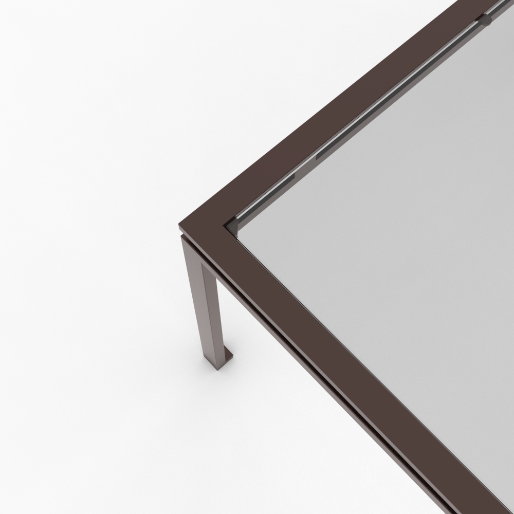 Featured imagery: Dusky Bronze frame, Low-iron clear glass top.
